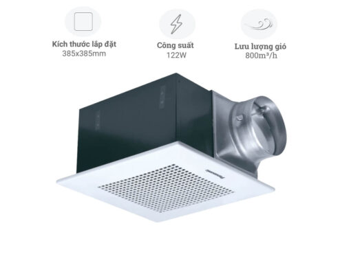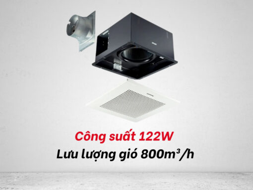 Quạt hút âm trần Panasonic FV-38CH8 được trang bị công suất 122W, với lưu lượng gió 800m³/h mạnh mẽ, giúp không gian của bạn luôn được thông thoáng, hạn chế mùi hôi, ẩm mốc hay nóng bức vào mùa hè.