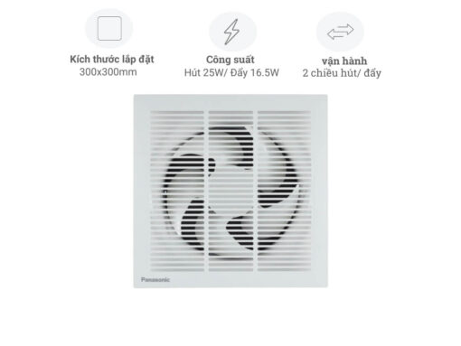 Quạt hút gắn tường Panasonic FV-25RL1 vận hành 2 chiều hút/ đẩy (hút từ trong ra ngoài và từ ngoài vào trong), thiết kế có màn che côn trùng sạch sẽ. Đặc biệt là vỏ máy vật liệu chống cháy và đạt tiêu chuẩn chống nước IPX4, đảm bảo an toàn để sử dụng.