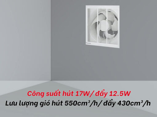 Quạt hút gắn tường Panasonic FV-25RL1 được trang bị công suất hút 25W/ đẩy 16.5W, với lưu lượng gió hút 840cm³/h/ đẩy 600cm³/h cùng độ ồn thấp, hoạt động êm ái, dễ chịu, giúp không gian của bạn luôn được thông thoáng, hạn chế mùi hôi, ẩm mốc hay nóng bức vào mùa hè.
