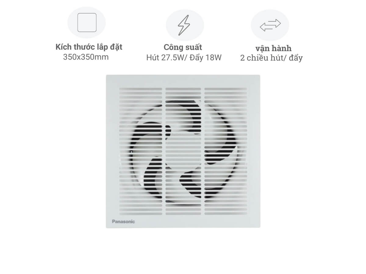 Quạt hút gắn tường Panasonic FV-25RL1 vận hành 2 chiều hút/ đẩy với công suất hút 25W/ đẩy 16.5W, lưu lượng gió hút 840cm³/h/ đẩy 600cm³/h giúp lưu thông không khí hiệu quả, phù hợp sử dụng cho nhà tắm, nhà bếp, phòng ngủ, nhà vệ sinh… Động cơ bạc đạn giúp quạt vận hành êm ái trong thời gian dài, độ ồn tối đa khi hút 40.5dB/ đẩy 43dB, đảm bảo yên tĩnh cho không gian sử dụng. Ngoài ra còn có cảm biến nhiệt tự động tắt quạt khi quạt quá nóng.