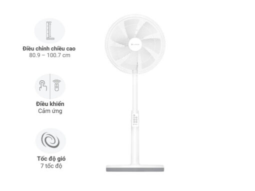 Đặc biệt, quạt có thể điều chỉnh độ cao linh hoạt từ 80.9 – 100.7 cm, đáp ứng đa dạng nhu cầu làm mát và phù hợp với nhiều không gian sử dụng khác nhau.