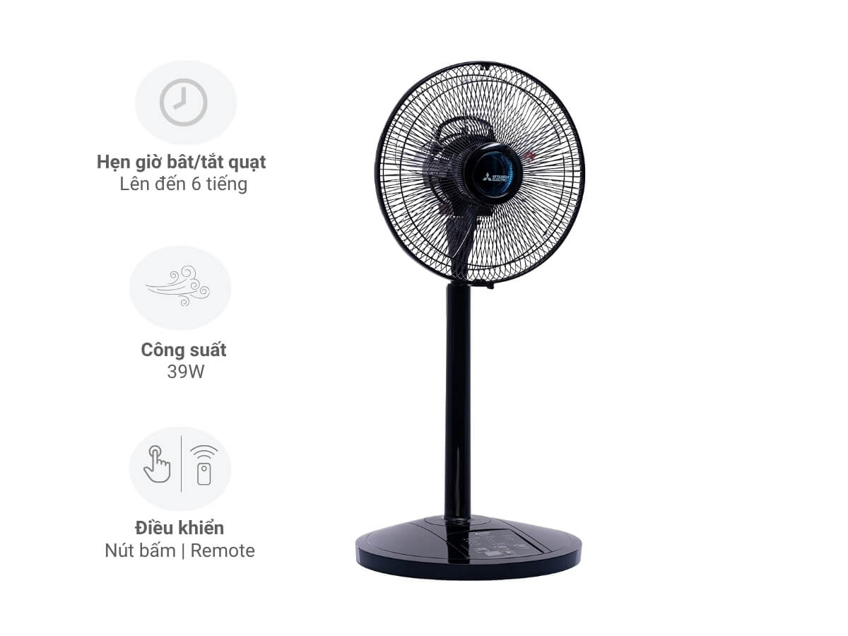 Với quạt lửng Mitsubishi R12-HRA BK (Đen), bạn có thể cài đặt hẹn giờ bật/tắt quạt theo khung thời gian mong muốn một cách dễ dàng. Có thể cài đặt thời gian khởi động quạt tự động từ 2-4-6 giờ. Và cài đặt thời gian tắt quạt tự động từ 1-2-4-6 giờ. Tính năng hẹn giờ giúp tăng trải nghiệm tiện lợi cho người dùng trong quá trình sử dụng.