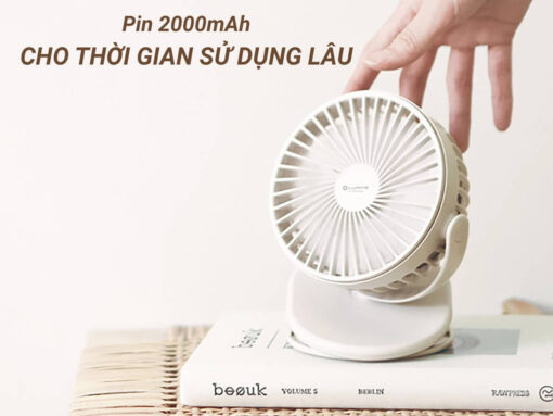Quạt tích điện Lumias F5 Lite trang bị viên pin dung lượng khá lớn 2000mAh, sử dụng được 1.5-6 tiếng tùy mức gió sử dụng, bạn có thể mang theo và sử dụng ở những nơi không có ổ điện, linh hoạt mà không cần phải cắm điện liên tục. Thời gian sạc đầy pin khoảng 3-3.5 tiếng.