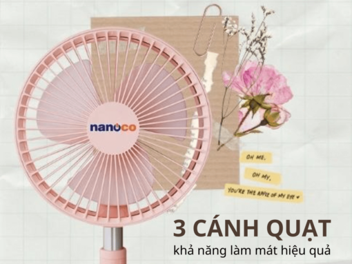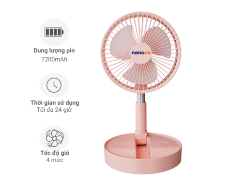Quạt tích điện Nanoco NFF1617P thiết kế nhỏ gọn, tiện lợi