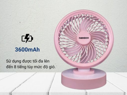 Quạt tích điện Nanoco NRF6213P trang bị viên pin dung lượng lớn đến 3600mAh, sử dụng được 3-7 tiếng, có thể di chuyển sử dụng ở những nơi không có ổ điện, linh hoạt mà không cần phải cắm điện liên tục.
