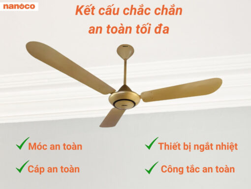Đối với những sản phẩm quạt trần thì độ chắc chắn, an toàn của sản phẩm là điều người dùng đặc biệt quan tâm. Và với quạt trần Nanoco NCF5631-GO thì bạn hoàn toàn có thể yên tâm vì quạt có 4 tính năng bảo vệ an toàn tối đa cho người dùng:
