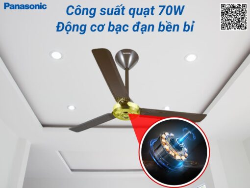 Quạt trần Panasonic F-56NCL-S sử dụng động cơ bạc đạn cải tiến, cho hiệu suất hoạt động mạnh mẽ, bền bỉ, đồng thời hạn chế tiếng ồn tối đa.