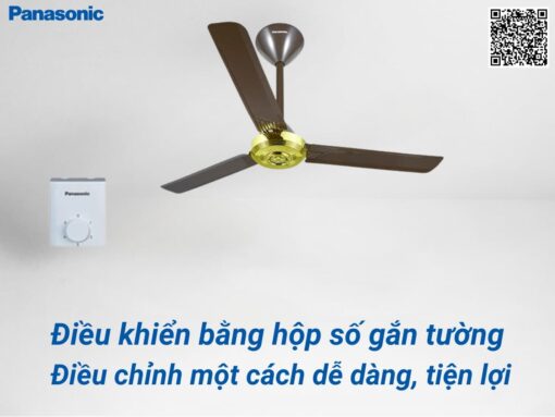 Quạt trần Panasonic F-56NCL-S trang bị hộp số gắn tường giúp để điều khiển bật/tắt quạt, điều chỉnh cấp độ gió một cách dễ dàng, tiện lợi.