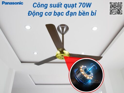 Quạt trần Panasonic F-56NCL sử dụng động cơ bạc đạn cải tiến, cho hiệu suất hoạt động mạnh mẽ, bền bỉ, đồng thời hạn chế tiếng ồn tối đa.