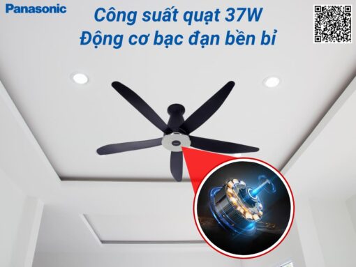 Quạt trần Panasonic F-60XDN được trang bị động cơ bạc đạn hiện đại, giúp tiết kiệm điện năng hiệu quả, cho hiệu suất hoạt động mạnh mẽ, bền bỉ, đồng thời hạn chế tiếng ồn tối đa.