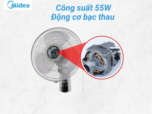 Quạt treo tường Midea FW40 7JR được trang bị động cơ bạc thau hiện đại, cho hiệu suất hoạt động mạnh mẽ, bền bỉ, đồng thời hạn chế tiếng ồn tối đa.