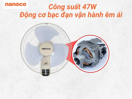 Quạt treo tường Nanoco NWF1610RC-BE trang bị động cơ bạc đạn có độ bền cao, hoạt động êm ái, ổn định và hạn chế tiếng ồn. Công suất hoạt động 47W đem đến khả năng làm mát tốt, hiệu quả mà không tiêu tốn nhiều điện năng.