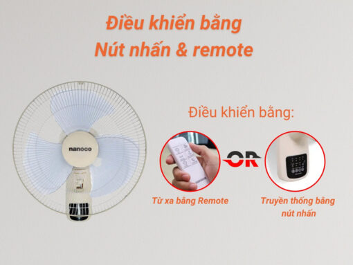 Hệ thống điều khiển trên quạt treo tường Nanoco NWF1610RC-BE rất hiện đại và tiện lợi. Bao gồm các nút nhấn trên thân quạt và remote điều khiển từ xa, cung cấp sự tiện lợi tối đa cho quá trình sử dụng.