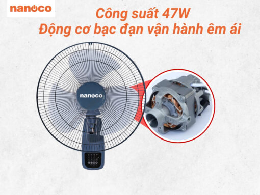 Quạt treo tường Nanoco NWF1610RC-BL trang bị động cơ bạc đạn có độ bền cao, hoạt động êm ái, ổn định và hạn chế tiếng ồn. Công suất hoạt động 47W đem đến khả năng làm mát tốt, hiệu quả mà không tiêu tốn nhiều điện năng.