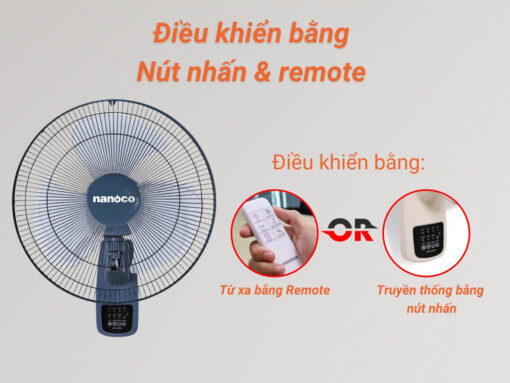 Hệ thống điều khiển trên quạt treo tường Nanoco NWF1610RC-BL rất hiện đại và tiện lợi. Bao gồm các nút nhấn trên thân quạt và remote điều khiển từ xa, cung cấp sự tiện lợi tối đa cho quá trình sử dụng.