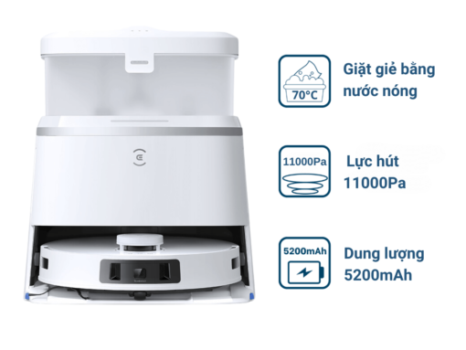 Đặc biệt, việc giặt giẻ lau được thực hiện bằng nước nóng 70°C cho hiệu quả giặt sạch tối ưu. Công nghệ làm sạch giẻ lau thông minh với nước nóng giúp giữ cho giẻ lau luôn sạch sẽ để sẵn sàng sử dụng cho lần lau nhà tiếp theo, đem đến hiệu quả làm sạch sàn nhà, đảm bảo vệ sinh, an toàn cho cả gia đình. Sau khi giẻ lau được làm sạch, trạm sạc cũng tự động sấy khô giẻ bằng khí nóng 45°C một cách nhanh chóng và dễ dàng.
