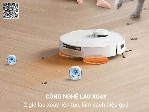 Công nghệ lau xoay với 2 giẻ lau xoay liên tục với tốc độ cao để tạo ra áp lực mạnh, giúp cọ sát và loại bỏ các vết bẩn cứng đầu bám trên sàn nhà hiệu quả.