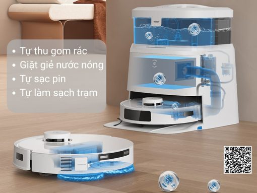 Trạm sạc OMNI mini đa năng: tự sạc pin, tự đổ rác và giặt giẻ lau