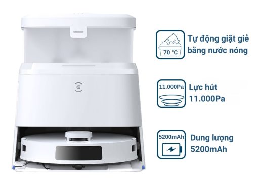 Với Robot Ecovacs Deebot T30e Pro Omni thông minh này, bạn không cần phải giặt giẻ thủ công vừa mất thời gian lại làm bẩn tay. Trạm sạc đa năng sẽ tự động giặt giẻ lau bằng nước nóng 70 độ C, không chỉ làm sạch giẻ một cách hiệu quả mà còn khử mùi hôi và hạn chế tối đa việc xâm nhập của vi khuẩn, ẩm mốc làm ảnh hưởng đến sức khoẻ gia đình.