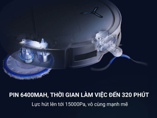 Robot hút bụi lau nhà Ecovacs Deebot T50 Pro Omni 2025 được trang bị pin lithium với dung lượng pin lớn 6400mAh, cho thời gian hoạt động lâu đến 320 phút và có khả năng làm sạch được khu vực lớn. Thời gian sạc đầy pin khoảng 6.5 giờ.
