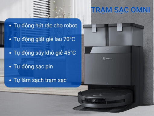 Trạm sạc OMNI có chức năng tự động thu gom rác cho robot. Mọi bụi bẩn, mảnh rác, lông thú cưng… trong hộp bụi robot sẽ được tự động đổ vào hộp chứa bụi của trạm sạc. Hộp chứa bụi này có dung tích 3L cùng với thiết kế khép kín hoàn toàn, giúp ngăn bụi thoát ra ngoài, và cho thời gian sử dụng lên đến 60 ngày, do đó bạn không cần phải đổ bụi thường xuyên.