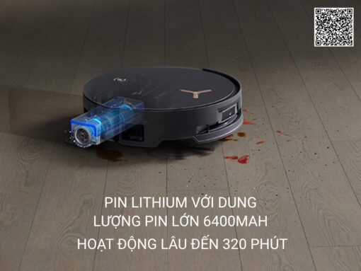 Robot hút bụi lau nhà Ecovacs Deebot X8 Pro Omni Auto Water Kit được trang bị pin lithium với dung lượng pin lớn 6400mAh, cho thời gian hoạt động lâu đến 320 phút và có khả năng làm sạch được khu vực lớn. Đặc biệt, robot tích hợp chức năng sạch nhanh cho thời gian sạc đầy pin chỉ khoảng 6.5 giờ.