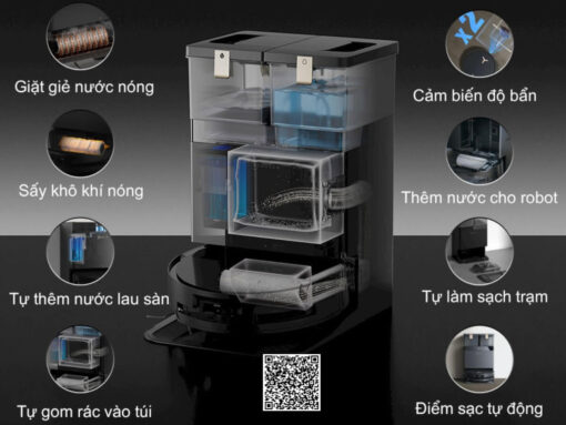 Tự hút nước bẩn và nạp nước sạch cho robot, tự bổ sung dung dịch nước lau nhà