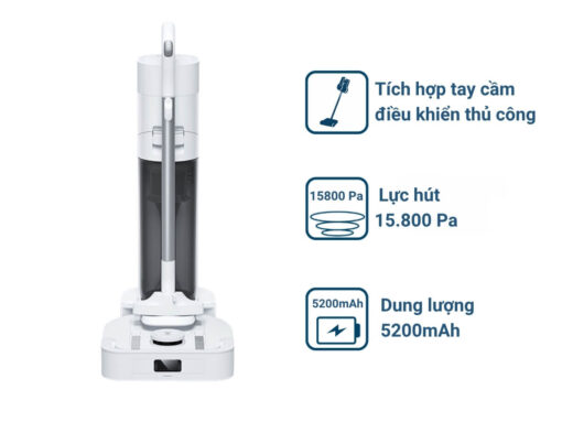 – Lực hút 15.800 Pa, vô cùng mạnh mẽ, cho hiệu quả hút sạch toàn diện. Mọi bụi bẩn, lông thú cưng, mảng bám lớn và cả bụi siêu mịn có trên sàn nhà hay các khe, rãnh nhỏ hẹp đều có thể được hút sạch một cách nhanh chóng và hiệu quả.