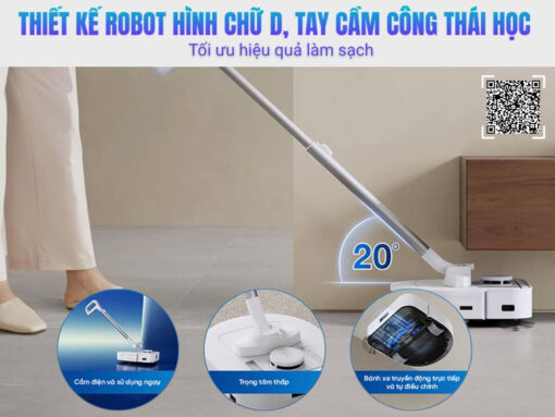 Thiết kế robot hình chữ D, tay cầm công thái học tối ưu hiệu quả làm sạch