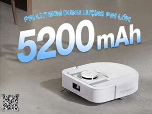 Robot hút bụi Ecovacs Deebot X5 Hybrid được trang bị pin lithium với dung lượng pin lớn 5200mAh, có khả năng hoạt động liên tục trong thời gian dài, đảm bảo có đủ năng lượng để làm sạch toàn bộ ngôi nhà chỉ trong một lần sạc đầy.