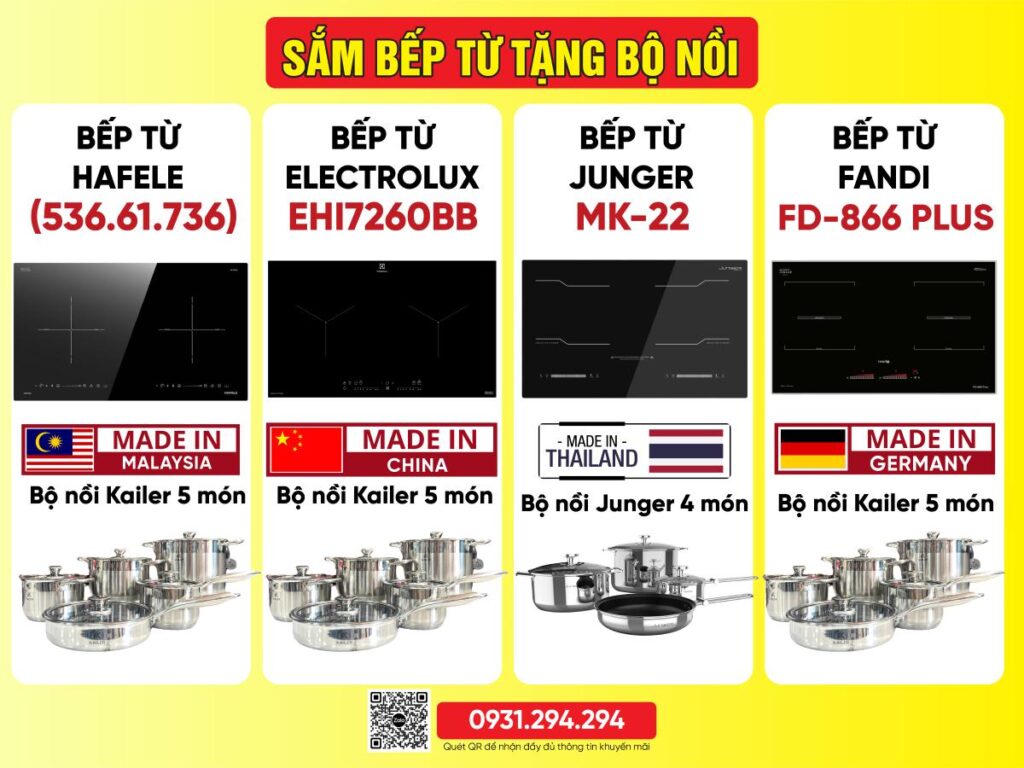 Chỉ có tại Bếp Hùng Phú, khi mua các dòng bếp từ chính hãng dưới đây, khách hàng sẽ được TẶNG NGAY bộ nồi inox KAILER 6667 gồm 5 món cao cấp!!!