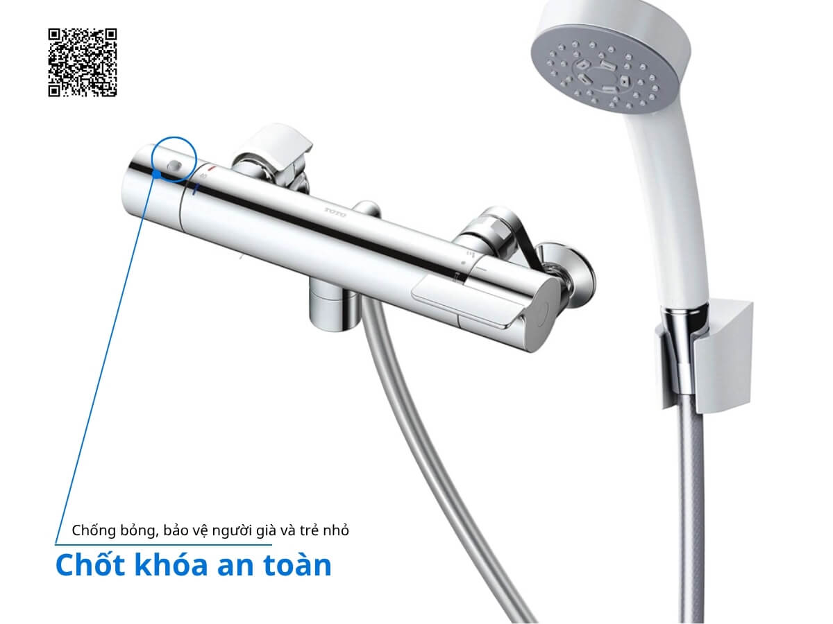 Với mục tiêu mang đến sự an tâm tuyệt đối, sen cây Toto TBW04401J1 được tích hợp chốt an toàn chống bỏng. Tính năng này giúp giới hạn nhiệt độ tối đa của nước, tránh gây bỏng rát khi tắm, đặc biệt hữu ích cho người cao tuổi và trẻ nhỏ hoặc người có làn da nhạy cảm.