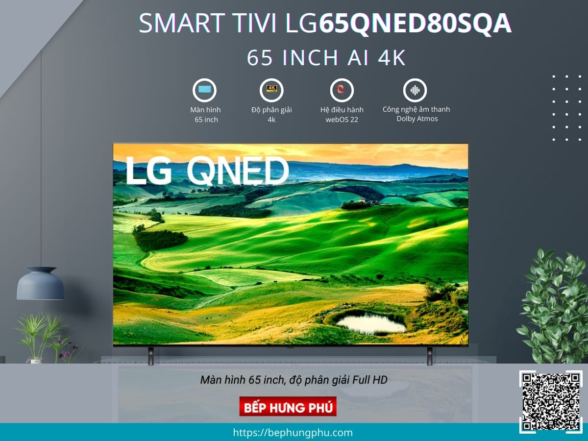Ðặc biệt khi mua Smart Tivi LG 65QNED80SQA QNED 4K 65 inch tại showroom Siêu Thị Bếp Hưng Phú quý khách có thể nhận ưu đãi chiết khấu đến 20%.