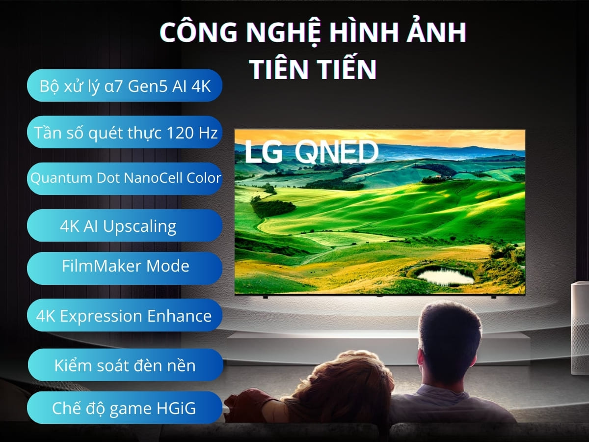 • Công nghệ Quantum Dot NanoCell Color (Tái tạo màu sắc thuần khiết, rực rỡ).