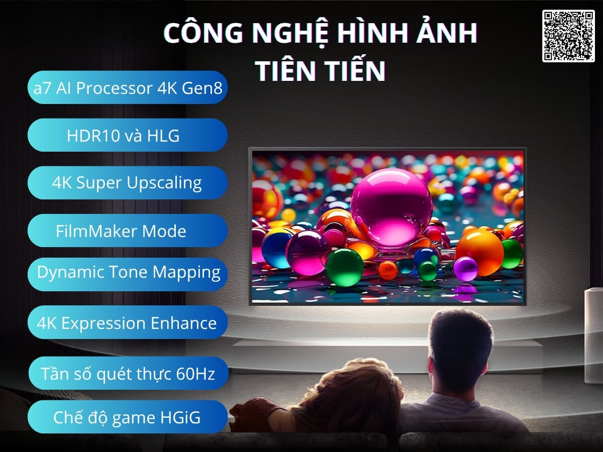 Bộ xử lý a7 AI Processor 4K Gen8: Đây là “bộ não” của tivi, giúp xử lý hình ảnh, âm thanh thông minh hơn, tối ưu hình ảnh theo ngữ cảnh và tăng độ chi tiết hình ảnh, tối ưu hóa mọi thứ bạn xem và nghe.