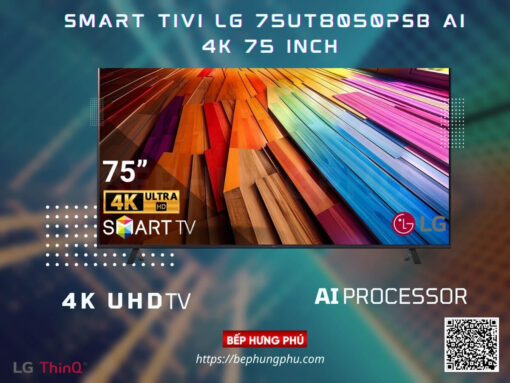 Ðặc biệt khi mua Smart Tivi LG 75UT8050PSB AI 4K 75 inch tại showroom Siêu Thị Bếp Hưng Phú quý khách có thể nhận ưu đãi chiết khấu đến 20%.