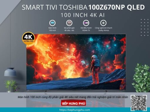 Ðặc biệt khi mua Smart Tivi Toshiba 100Z670NP QLED AI 4K 100 inch tại showroom Siêu Thị Bếp Hưng Phú quý khách có thể nhận ưu đãi chiết khấu đến 20%.