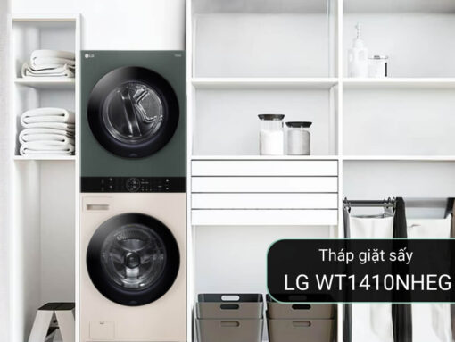 Tháp giặt sấy LG WT1410NHEG thiết kế độc đáo, sang trọng, khối lượng giặt 14kg, sấy 10kg