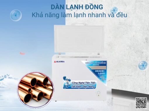 Tủ đông Alaska BD-400C trang bị dàn lạnh đồng bền bỉ, chống ăn mòn, cho khả năng làm lạnh nhanh và sâu, nhiệt độ có thể xuống mức -18ºC, thoải mái bảo quản kem, thịt, hải sản và các thực phẩm đông lạnh khác. Cùng với công nghệ làm lạnh tiên tiến, cung cấp luồng khí lạnh đều khắp đến các ngóc ngách trong tủ giúp thực phẩm bên trong được bảo quản tốt và lâu, đảm bảo độ tươi ngon trong thời gian dài.