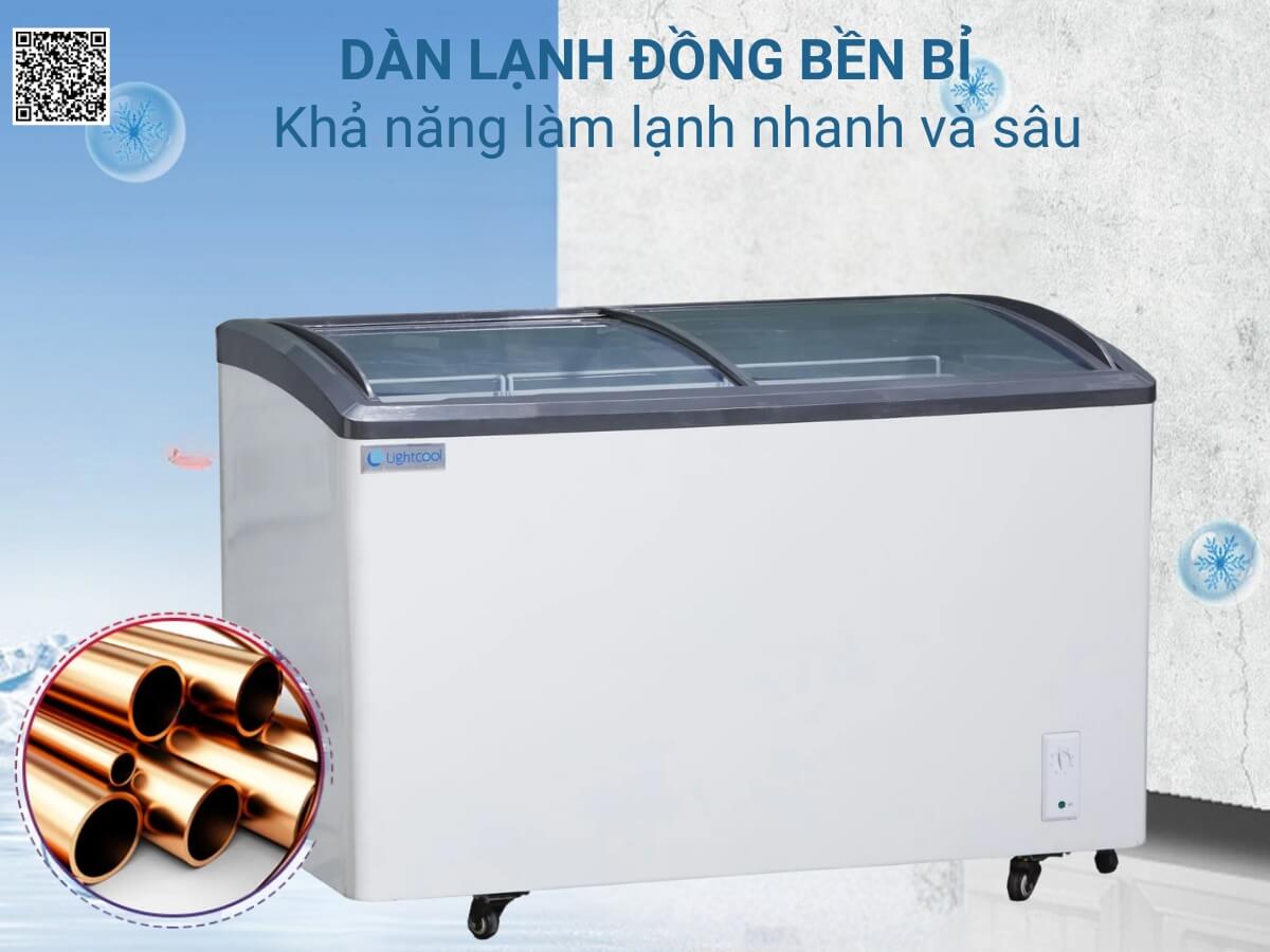 Tủ đông Lightcool SD-418Y 328L trang bị dàn lạnh đồng bền bỉ, chống ăn mòn, cho khả năng làm lạnh nhanh và sâu, nhiệt độ có thể xuống mức -22ºC, thoải mái bảo quản kem, thịt, hải sản và các thực phẩm đông lạnh khác. Cùng với công nghệ làm lạnh trực tiếp, cung cấp luồng khí lạnh đều khắp đến các ngóc ngách trong tủ giúp thực phẩm bên trong được bảo quản tốt và lâu, đảm bảo độ tươi ngon trong thời gian dài.