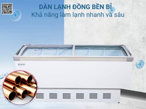 Tủ đông Lightcool SD-798 615L trang bị dàn lạnh đồng bền bỉ, chống ăn mòn, cho khả năng làm lạnh nhanh và sâu, nhiệt độ có thể xuống mức -22ºC, thoải mái bảo quản kem, thịt, hải sản và các thực phẩm đông lạnh khác. Cùng với công nghệ làm lạnh trực tiếp, cung cấp luồng khí lạnh đều khắp đến các ngóc ngách trong tủ giúp thực phẩm bên trong được bảo quản tốt và lâu, đảm bảo độ tươi ngon trong thời gian dài.