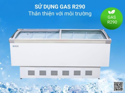 Tủ đông Lightcool SD-798 615L sử dụng loại Gas R290 an toàn cao với người dùng, khả năng làm lạnh lâu và êm ái, đồng thời tiết kiệm điện năng khi sử dụng, thân thiện với môi trường.