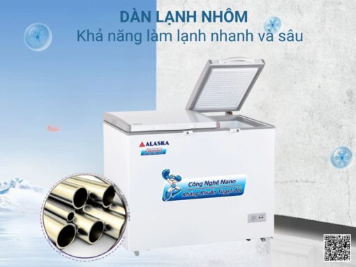 Tủ đông mát Alaska BCD-3571 trang bị dàn lạnh nhôm, cho khả năng làm lạnh nhanh và đều, nhiệt độ có thể xuống mức -18ºC, thoải mái bảo quản kem, thịt, hải sản và các thực phẩm đông lạnh khác. Cùng với công nghệ làm lạnh tiên tiến, cung cấp luồng khí lạnh đều khắp đến các ngóc ngách trong tủ giúp thực phẩm bên trong được bảo quản tốt và lâu, đảm bảo độ tươi ngon trong thời gian dài.