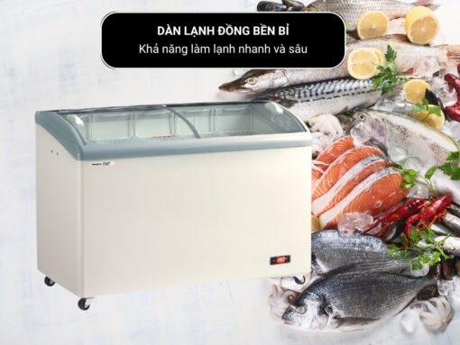 Tủ đông Panasonic SCR-PT101GVN thiết kế 2 cửa – 1 ngăn đông với dung tích 345 lít, phù hợp dùng cho nhà hàng, quán ăn, cửa hàng tiện lợi… với quy mô không quá lớn. Tủ được trang bị dàn lạnh đồng bền bỉ và giúp làm lạnh hiệu quả. Ngoài ra là thiết kế cửa kính cong trượt tiện lợi sử dụng, đặc biệt là công nghệ Low-E chống đọng sương hiệu quả. Có thể điều chỉnh nhiệt độ -18ºC ~ -25ºC phù hợp với nhiều loại thực phẩm khác nhau.