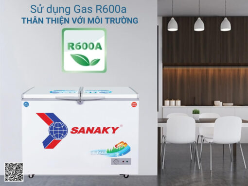 Tủ đông Sanaky VH-2899W1 sử dụng loại Gas R600a an toàn cao với người dùng, khả năng làm lạnh lâu và êm ái, đồng thời tiết kiệm điện năng khi sử dụng, thân thiện với môi trường.