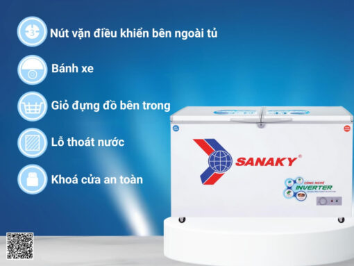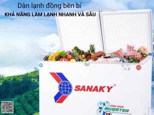 Tủ đông Sanaky VH-4099W3 còn trang bị công nghệ Inverter, giúp duy trì nhiệt độ ổn định và giúp tủ hoạt động êm ái, tiết kiệm điện năng đáng kể.