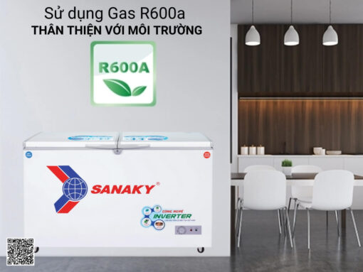 Tủ đông Sanaky VH-4099W3 sử dụng loại Gas R600a an toàn cao với người dùng, khả năng làm lạnh lâu và êm ái, đồng thời tiết kiệm điện năng khi sử dụng, thân thiện với môi trường.