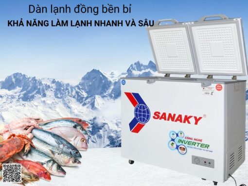 Tủ đông Sanaky VH-4099W4K trang bị dàn lạnh đồng bền bỉ, chống ăn mòn, cho khả năng làm lạnh nhanh và sâu, nhiệt độ có thể xuống mức -18ºC, thoải mái bảo quản kem, thịt, hải sản và các thực phẩm đông lạnh khác. Cùng với công nghệ làm lạnh tiên tiến, cung cấp luồng khí lạnh đều khắp đến các ngóc ngách trong tủ giúp thực phẩm bên trong được bảo quản tốt và lâu, đảm bảo độ tươi ngon trong thời gian dài.
