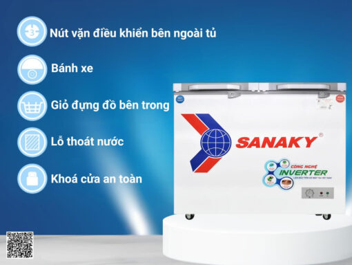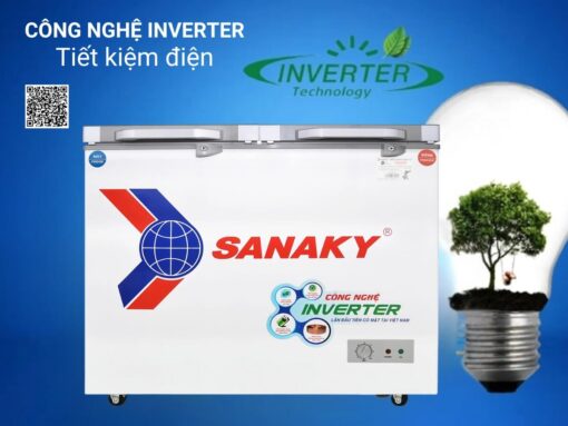 Tủ đông Sanaky VH-4099W4K còn trang bị công nghệ Inverter, giúp duy trì nhiệt độ ổn định và giúp tủ hoạt động êm ái, tiết kiệm điện năng đáng kể.