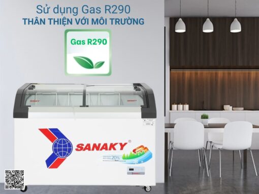 Tủ đông Sanaky VH-4899KB sử dụng loại Gas R290 an toàn cao với người dùng, khả năng làm lạnh lâu và êm ái, đồng thời tiết kiệm điện năng khi sử dụng, thân thiện với môi trường.